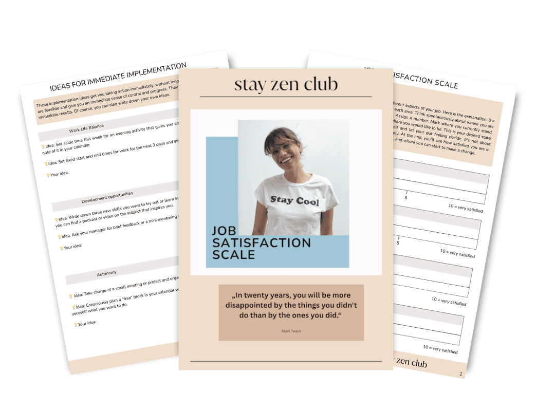 With the job satisfaction scale, you can find out in just 5 minutes why you are dissatisfied and get 16 ideas you can implement immediately to improve your situation. Quick, practical and without endless self-reflection.